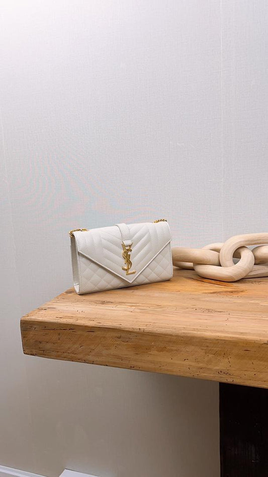 YSL White Quilted Grain De Poudre Envelope (GHW)