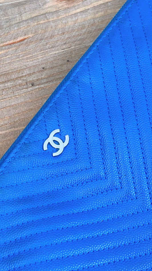 Chanel Blue Caviar Chevron Medium O’case (SHW)