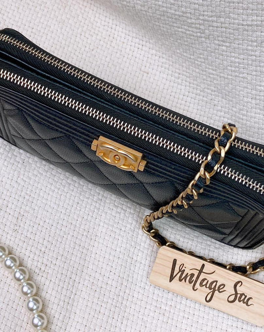 Chanel Black Caviar Boy Double Zip WOC GHW