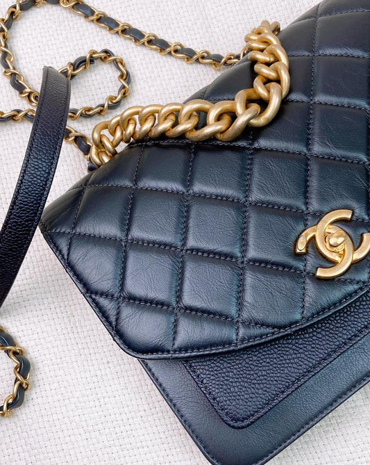 Chanel Black Caviar Calfskin Handle Flap Bag GHW