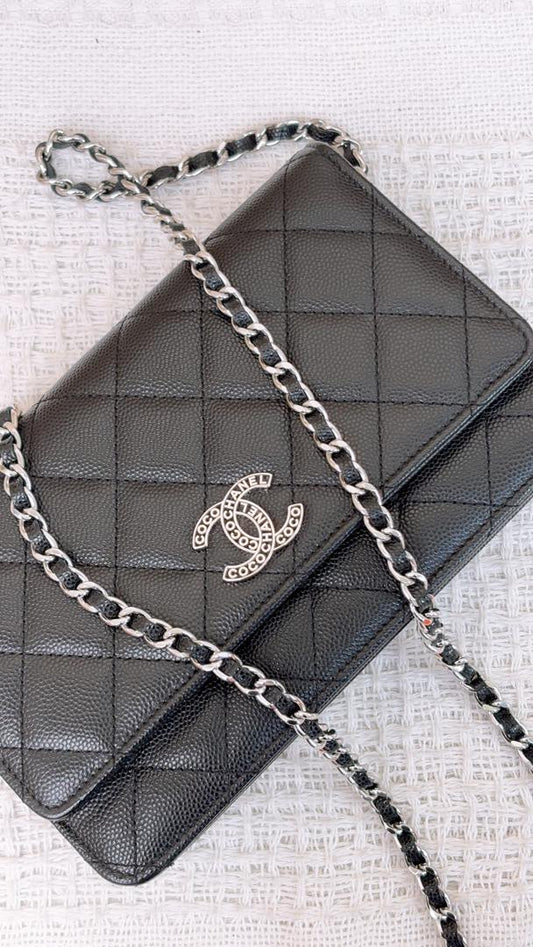 Chanel Black Caviar 24P Coco CC WOC (SHW)