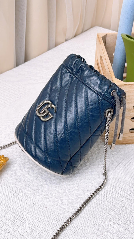 Gucci Navy Marmont Bucket Chain Bag