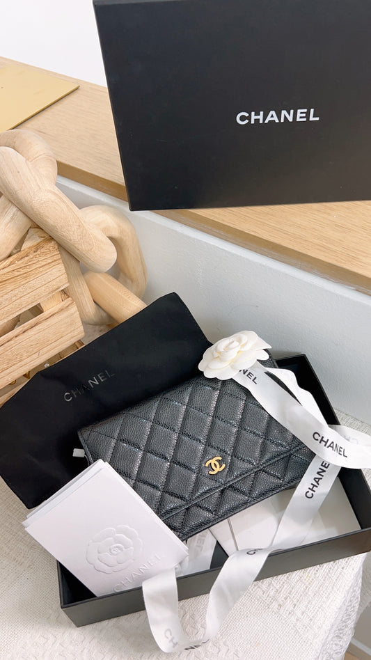 Chanel Black Caviar 22B XL Card Holder GHW