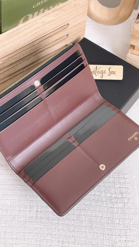Chanel Black Caviar Bifold Long Flap Wallet (LGHW)