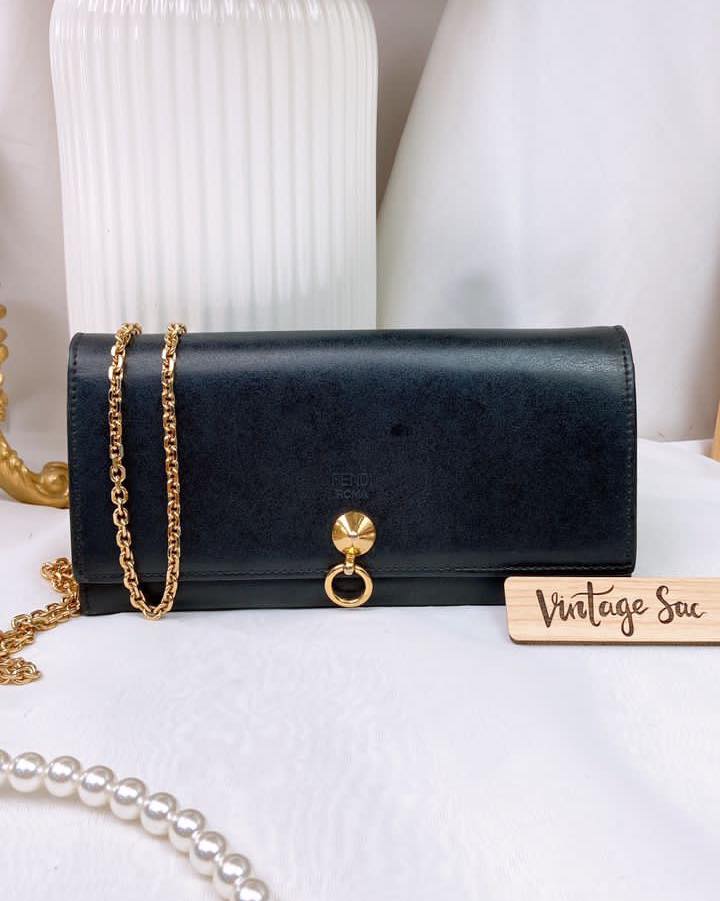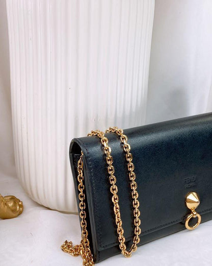 Fendi Black Calfskin By The Way Wallet on Chain