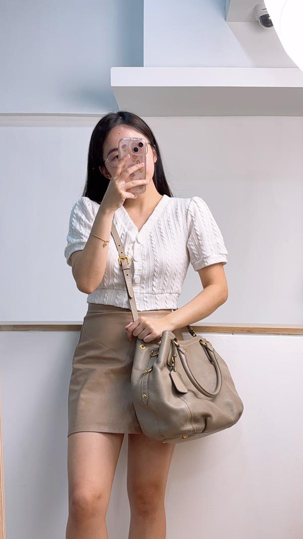 Minimalist mood activated. This Prada grey tote brings quiet luxury to every outfit without even trying.